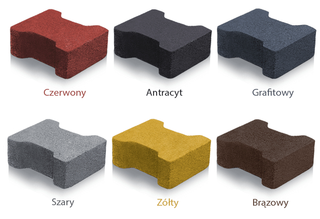 W ofercie posiadamy kolor czerwony, żółty, brązowy, szary, grafitowy oraz antracyt